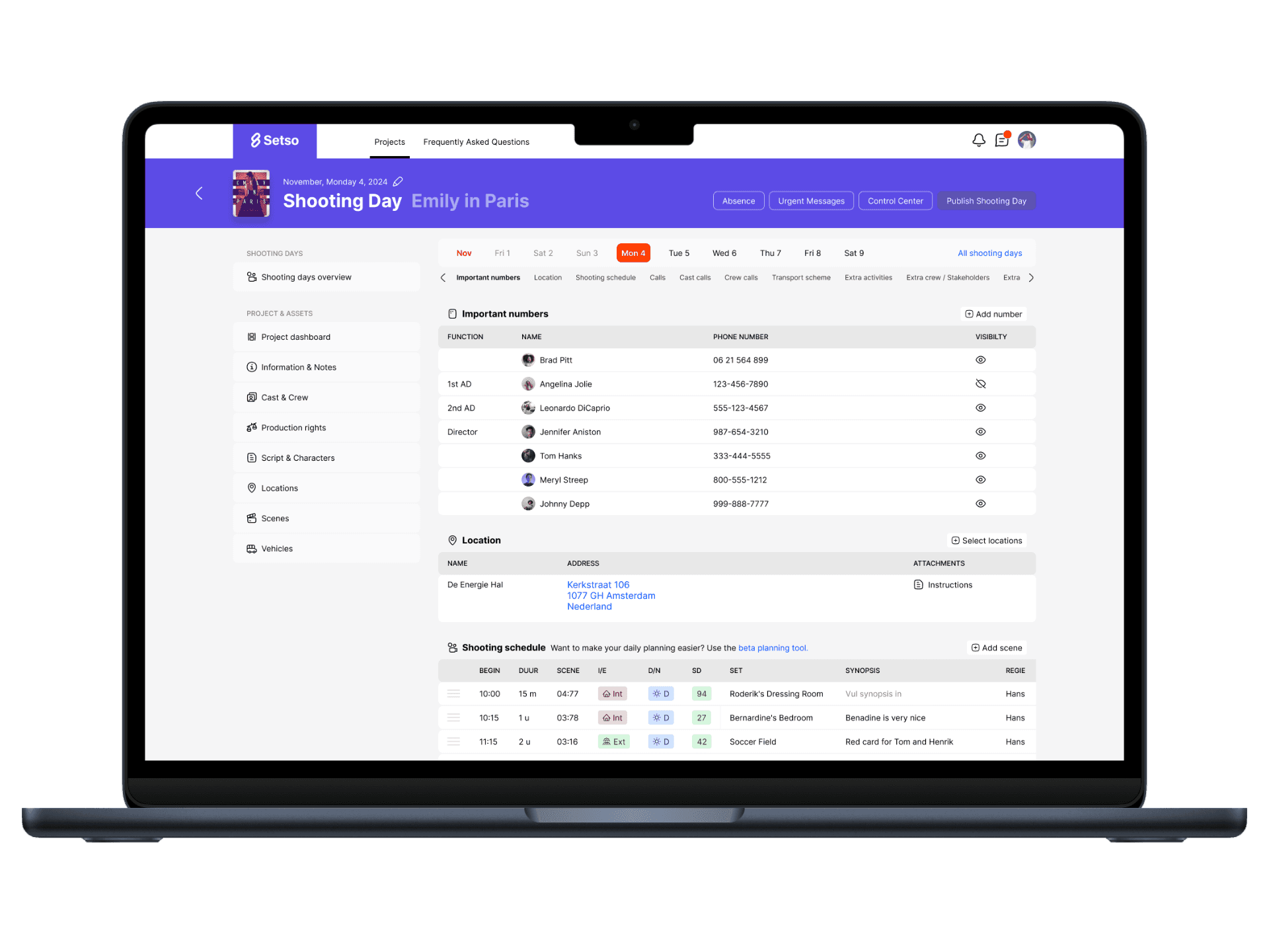 “Setso was born out of our own experiences on set, where outdated workflows and miscommunications often got in the way of creativity. We knew there had to be a better way to manage productions—one that puts real-time information and collaboration at the center. Setso isn’t just a tool; it’s a solution built for and by the industry, designed to make production work safer, more efficient, and ultimately more inspiring.